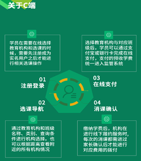 U培+:平臺是基于“民辦教育全場景綜合服務(wù)+資金監(jiān)管”的互聯(lián)網(wǎng)+模式,通過“行政管理+金融監(jiān)管”的結(jié)合,實現(xiàn)對民辦教育機構(gòu)的辦學(xué)審批、師資建設(shè)、教學(xué)質(zhì)量、服務(wù)質(zhì)量、誠信監(jiān)督、學(xué)費監(jiān)管、異動預(yù)警等全生命周期管理。